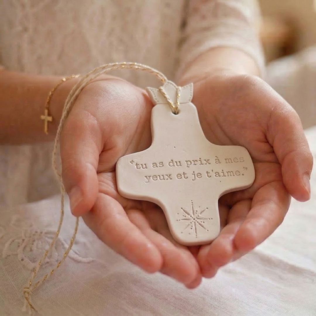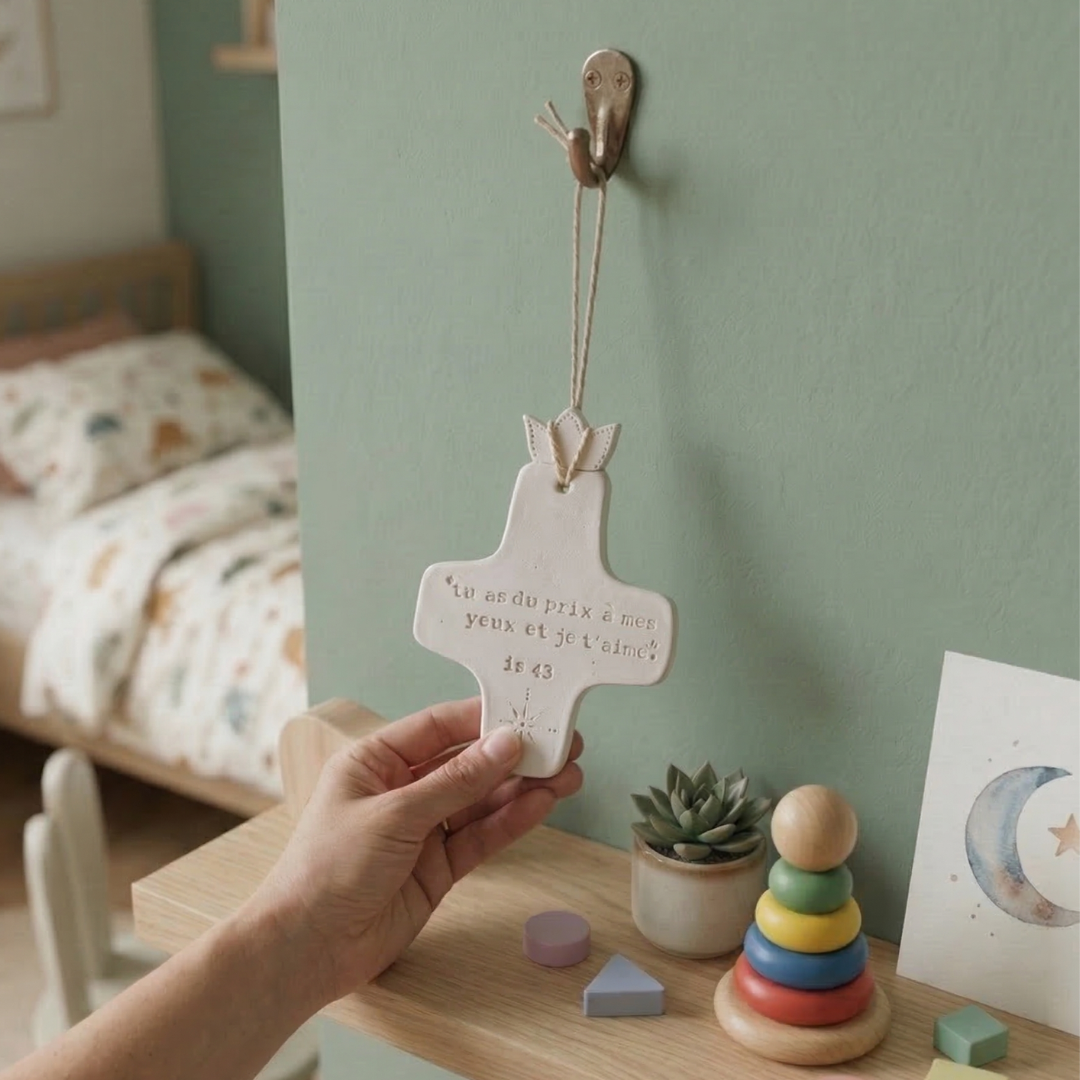 Artisanat habité : Chaque croix est unique — les légères variations de la terre sont la signature d'un travail fait à la main, avec le cœur. Celle que vous offrez n'existera qu'une seule fois.