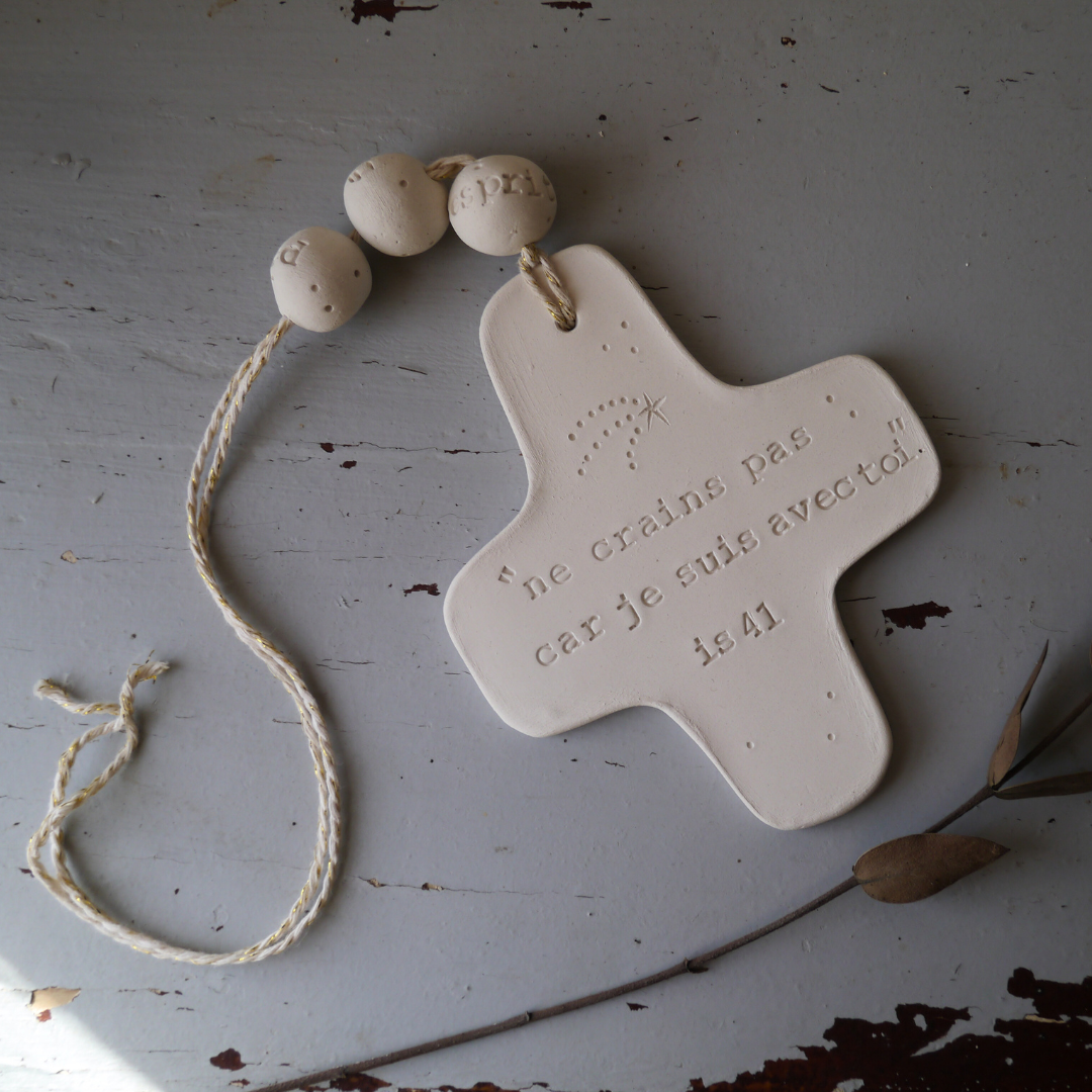 Croix en céramique gravée "ne crains pas car Je suis avec toi" Isaïe 41
